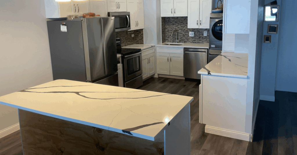 - Transparent Pricing: At $50 per square foot, our price includes the premium 3 cm slab, digital measurements, CNC fabrication, eased edge, professional installation, dishwasher bracket, and caulking. Any additional fees (e.g., small-project minimum or long-distance travel) are clearly explained before work begins.