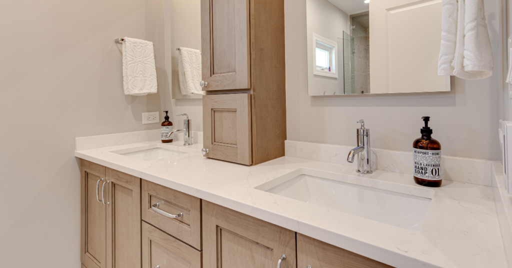 This is common for bathroom vanities, laundry rooms, mudrooms, and bar tops.