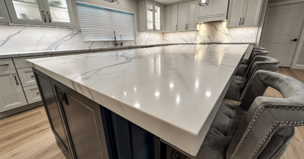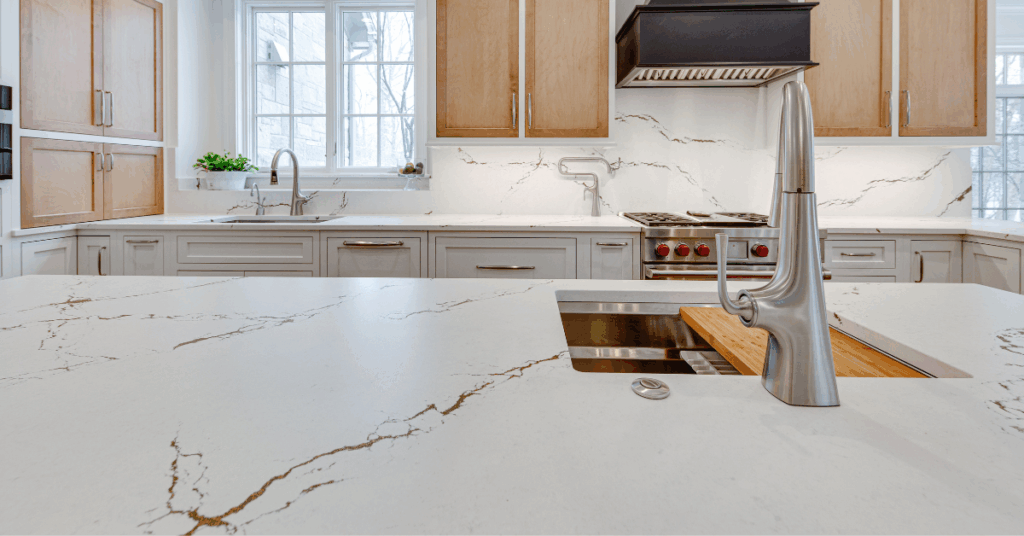 If you’re replacing your countertops, this is the perfect time to update your backsplash. Even a simple change—like replacing small tiles with a full-height quartz backsplash—can transform the entire kitchen.